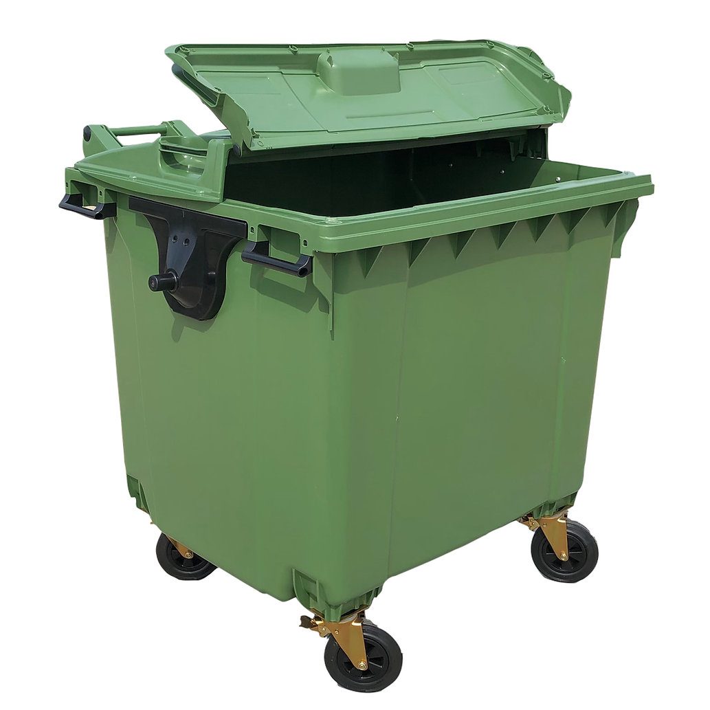 Prügikast 1100 l roheline pooleks avaneva kaanega